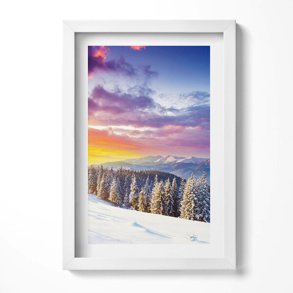 Különböző méretekben elérhető – 20x30 cm-től 100x70 cm-ig – a Téli táj naplementével falikép tökéletesen mutat a kisebb, otthonos terekben és a tágas, reprezentatív helyiségekben egyaránt. Választhat elegáns fekete vagy visszafogott fehér keretet, hogy tökéletesen illeszkedjen az Ön stílusához.
